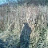 Rudą kitę za krzakiem chowa